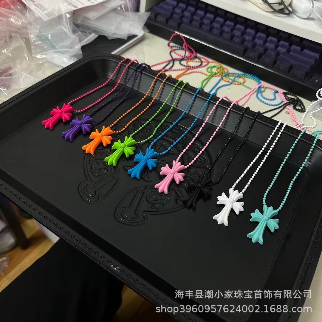 2023 Hip Hop Colorful Cross Necklace for Women Age-Reducing Trend Versatile Color Options Wholesale Pendant