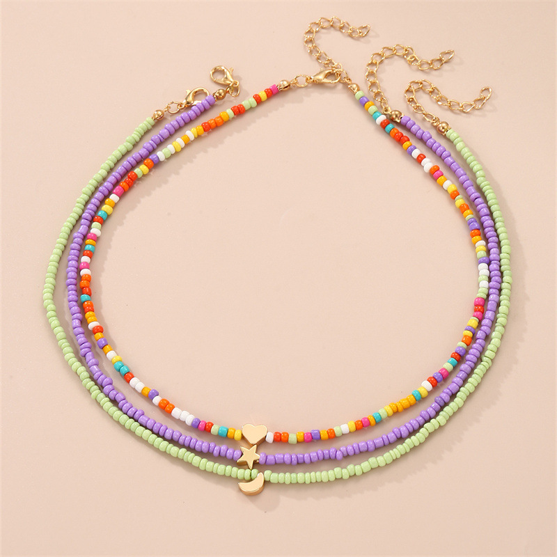 NZ3010 Cross-border European and American Star Moon Bohemian Rice Bead Necklace Color Beaded Fashion Women Necklace Jewelry