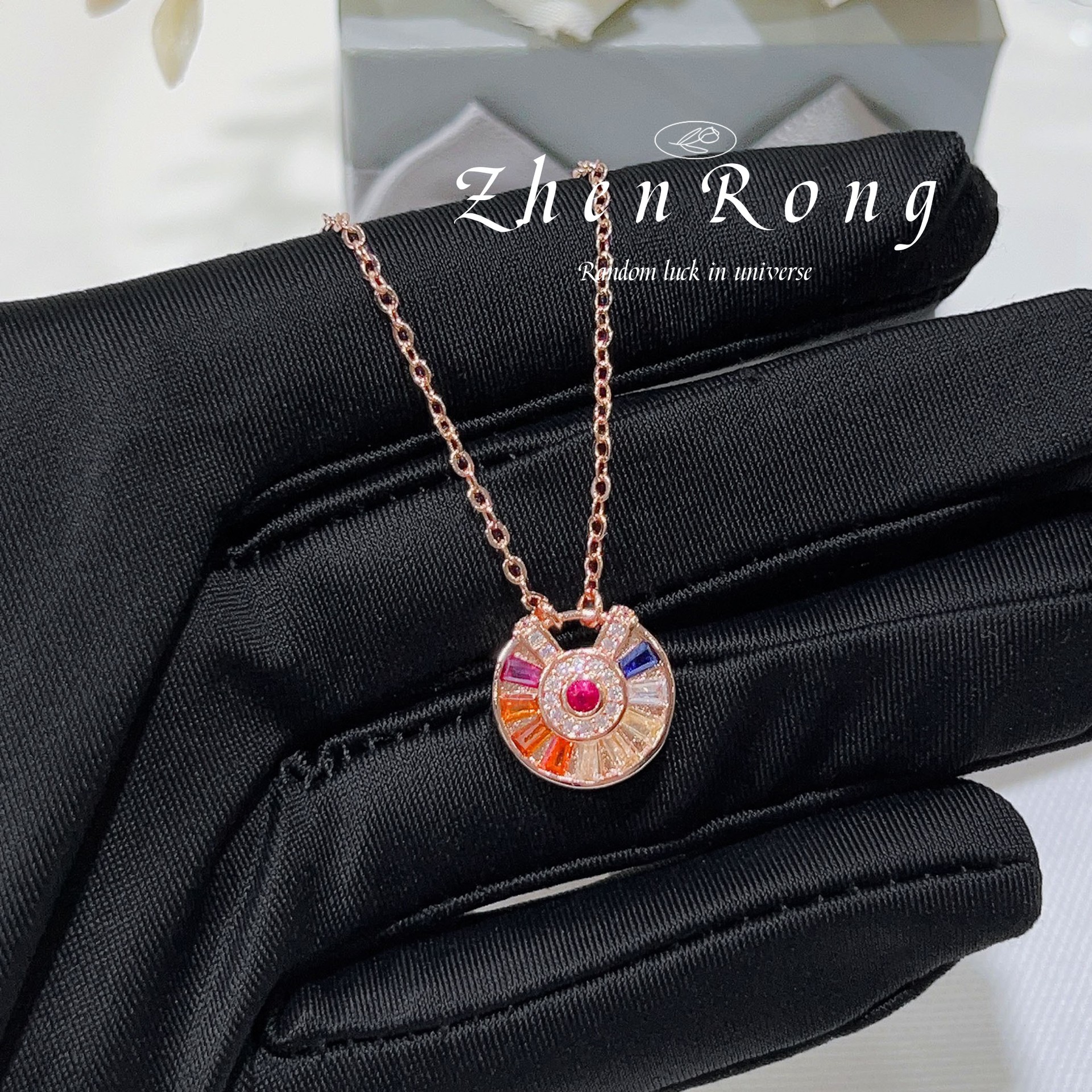 Colorful Necklace Lucky Amulet Pendant Women's 18K Rose Gold Plating Colorful Gem Light Luxury High-end Necklace Women
