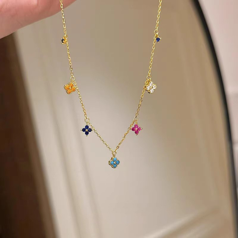 Dopamine Colorful Four-Leaf Flower Necklace for Women 2025 New Popular Style Accessible Luxury Niche Exquisite High-End Versatile Elegant Whitening