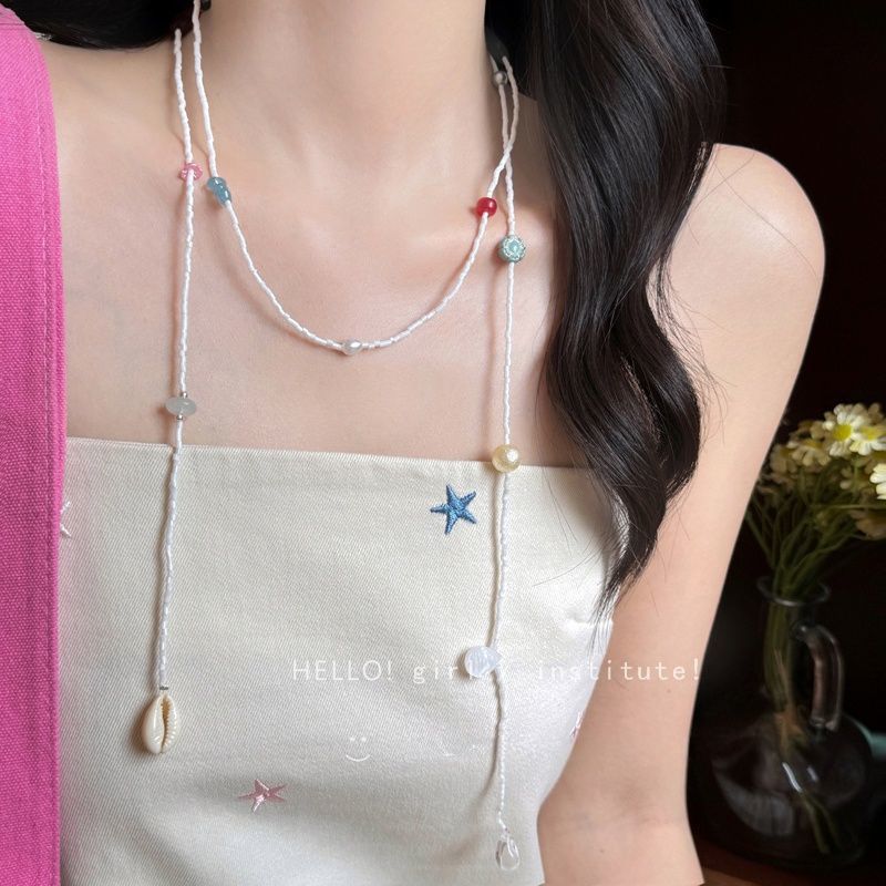 2025 New Summer Vacation Style Beaded Shell Necklace Women's High-End Clavicle Chain Colorful Dopamine Necklace