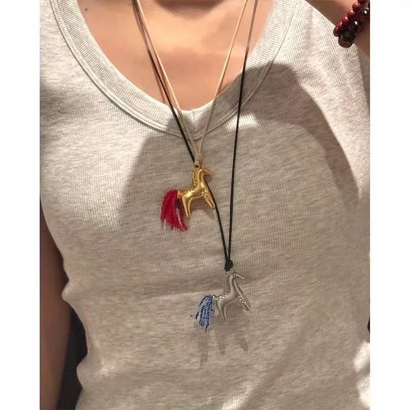 Colorful Beaded Tassel Pony Pendant Necklace Niche Fashion Personality Fun Drawstring Sweater Chain Collarbone Chain for Women