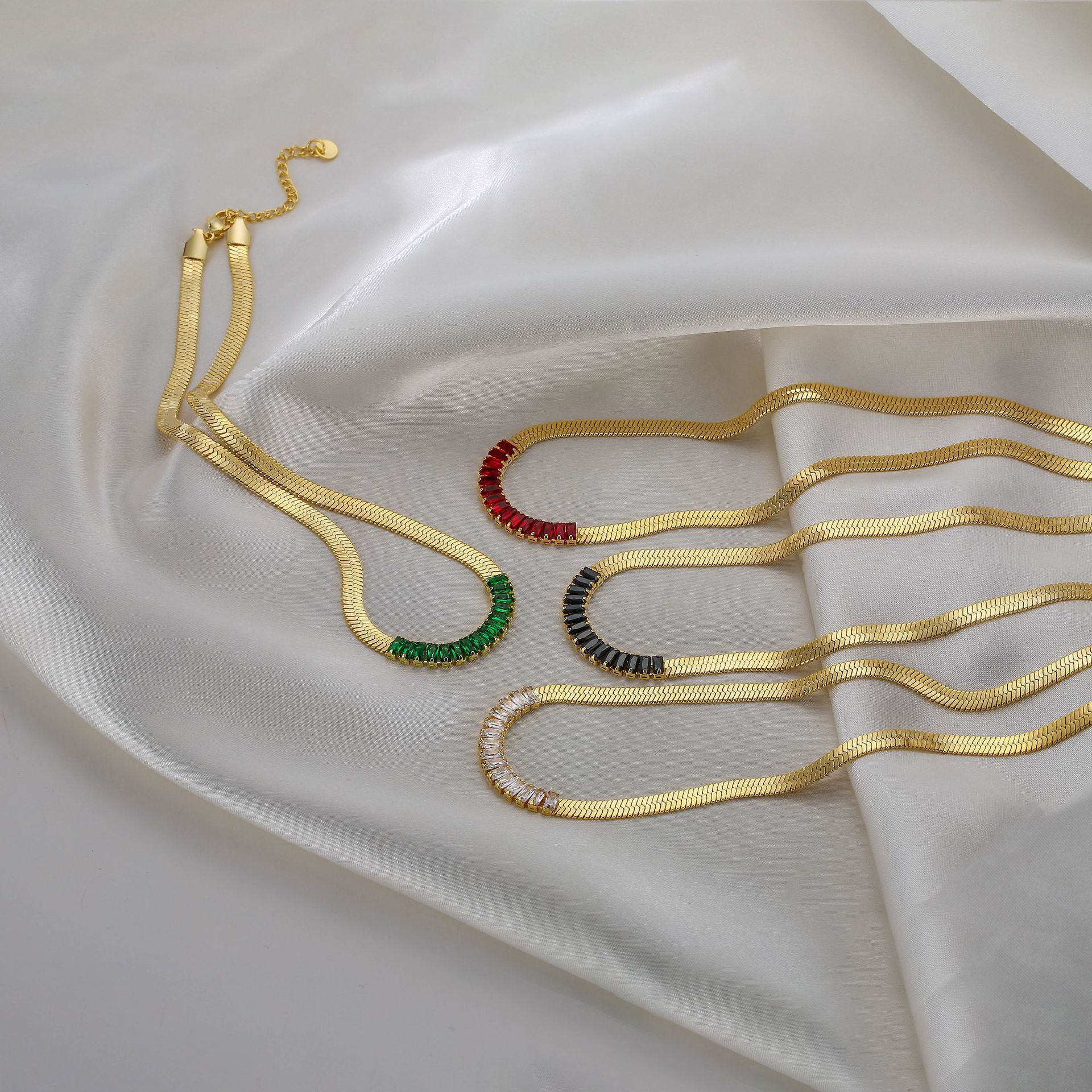 HECHENG jewelry zircon blade chain stainless steel necklace T square color zircon blade chain necklace for women