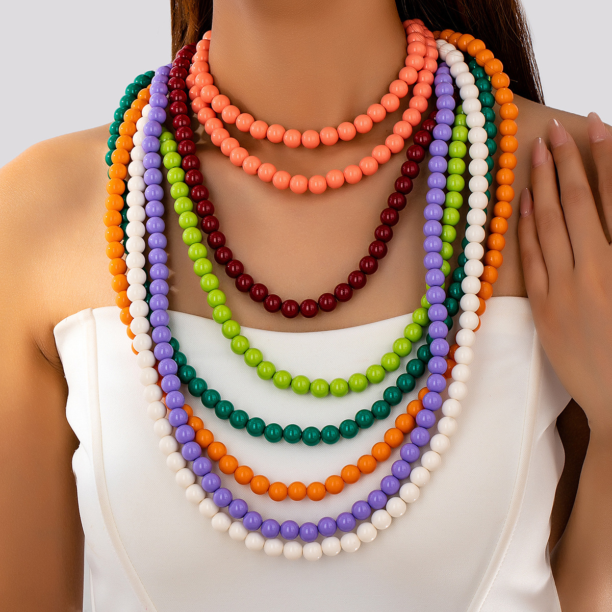 Cross-Border Xiyin Retro Fashion Niche Exquisite Personality Elegant Creative Exaggerated Colorful Bead Necklace Jewelry for Women