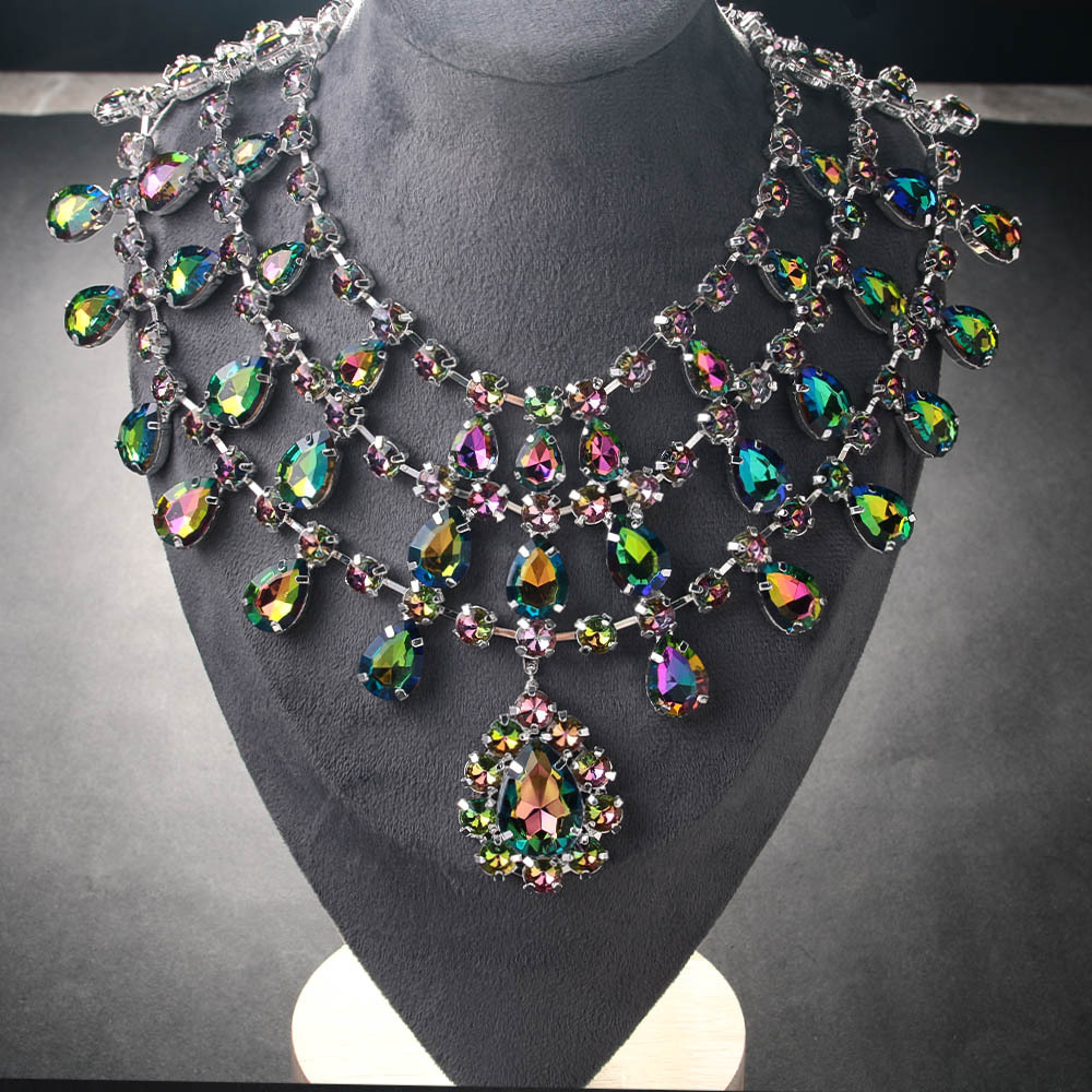 Colorful Fashion Trendy Zircon Luxury Necklace Earrings Tulip Set Ins Live Broadcast Hot Style Wearing Skirt