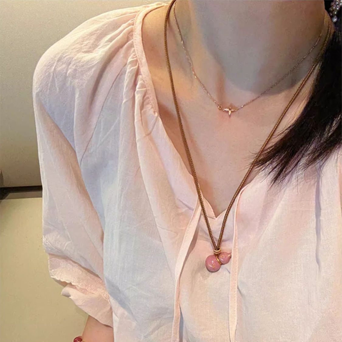 Bee Mom Handmade Colorful Oil Drop Enamel Gourd Necklace Women's Long Pendant Braided Rope Accessories Sweater Chain