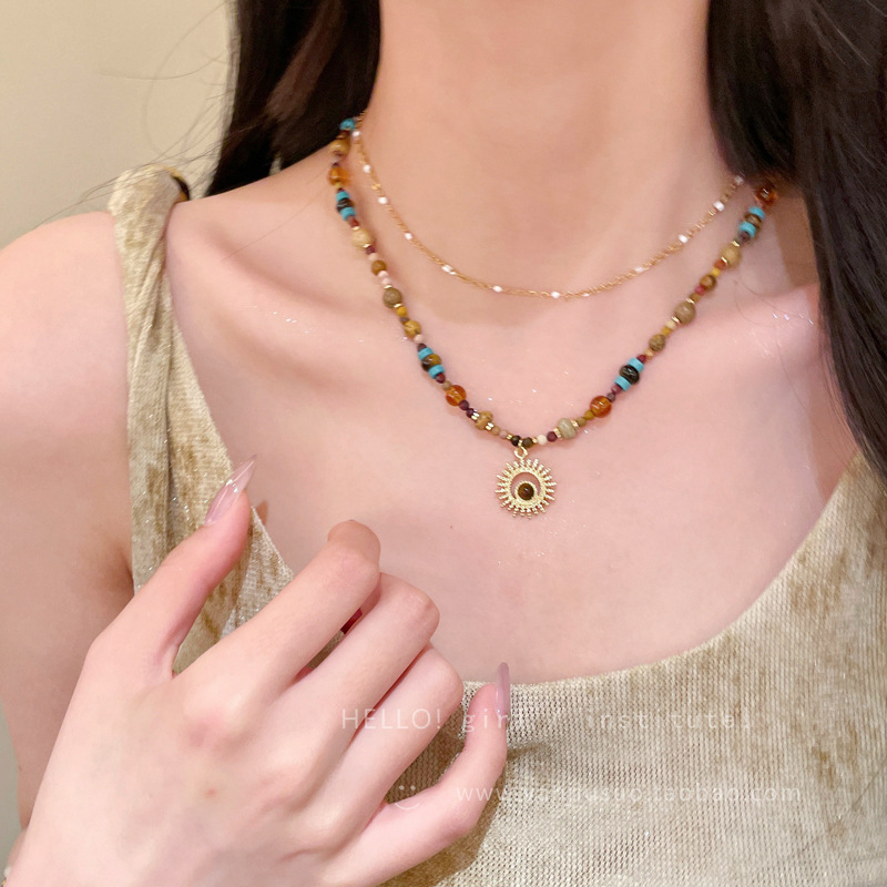 New Chinese Style Colorful Beaded Necklace Holiday Style Beaded Niche Clavicle Chain Turquoise Light Luxury Necklace High-End New Style