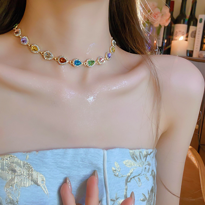 Color crystal necklace fashion niche design sense clavicle chain high sense Joker light luxury temperament jewelry manufacturers