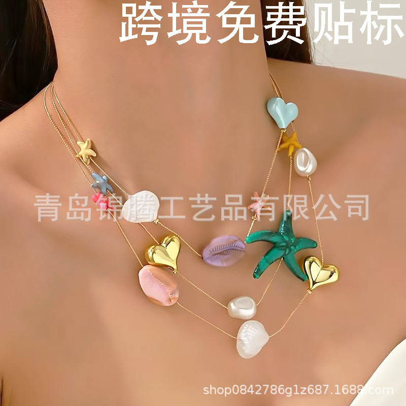 Cross-Border European and American Bohemian Style Starfish Shell Necklace Dopamine Colorful Seaside Vacation Creative Clavicle Chain