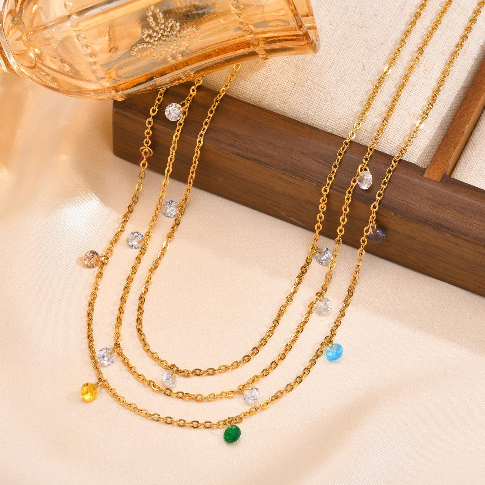 Stainless Steel Fragment Necklace Colorful Zircon White Zircon Summer Clavicle Chain Ladies Gold Cross Border Jewelry Wholesale