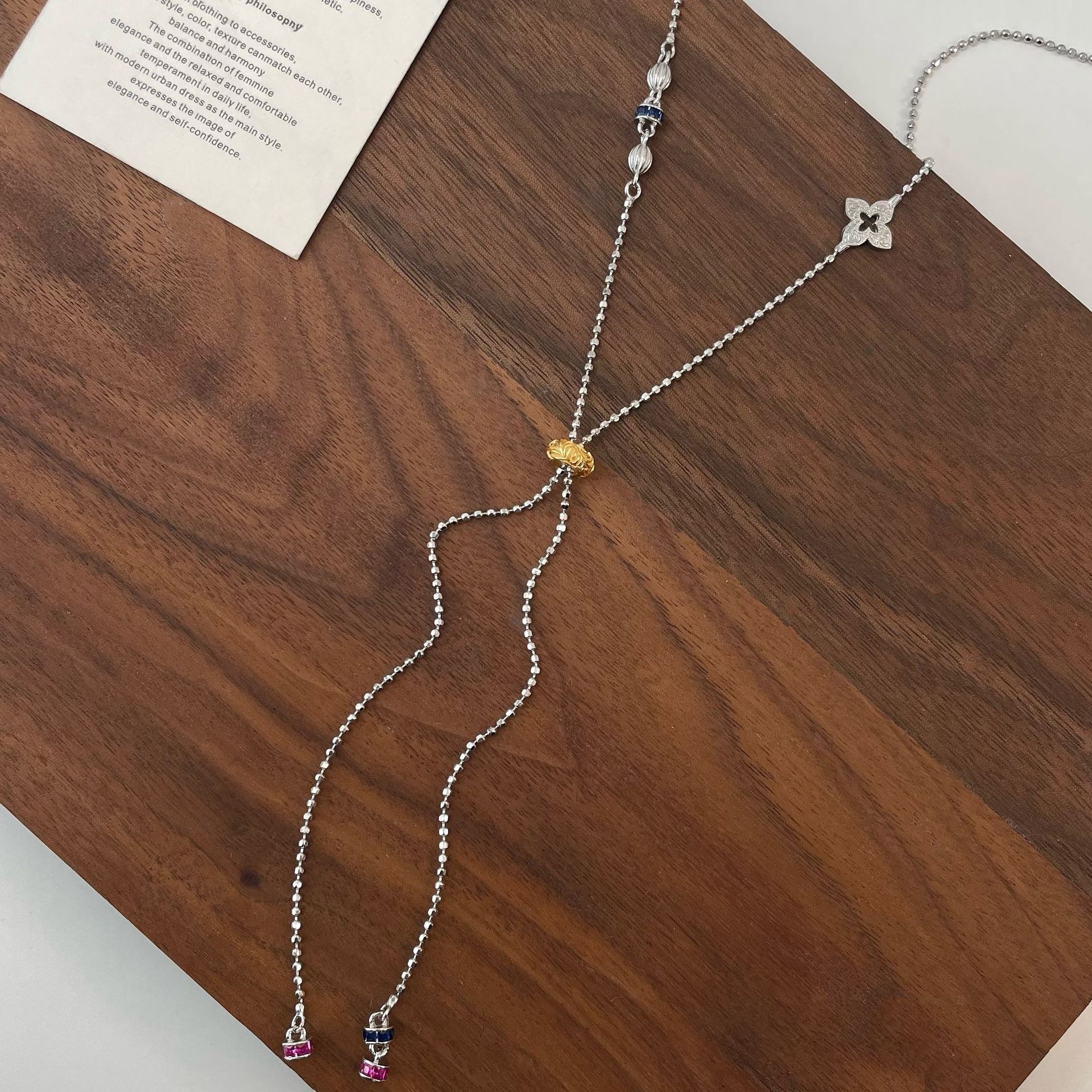 S925 Sterling Silver Elegant Stylish Colorfulful Zircon Pull-Out Necklace Ins Style Texture French Retro Niche