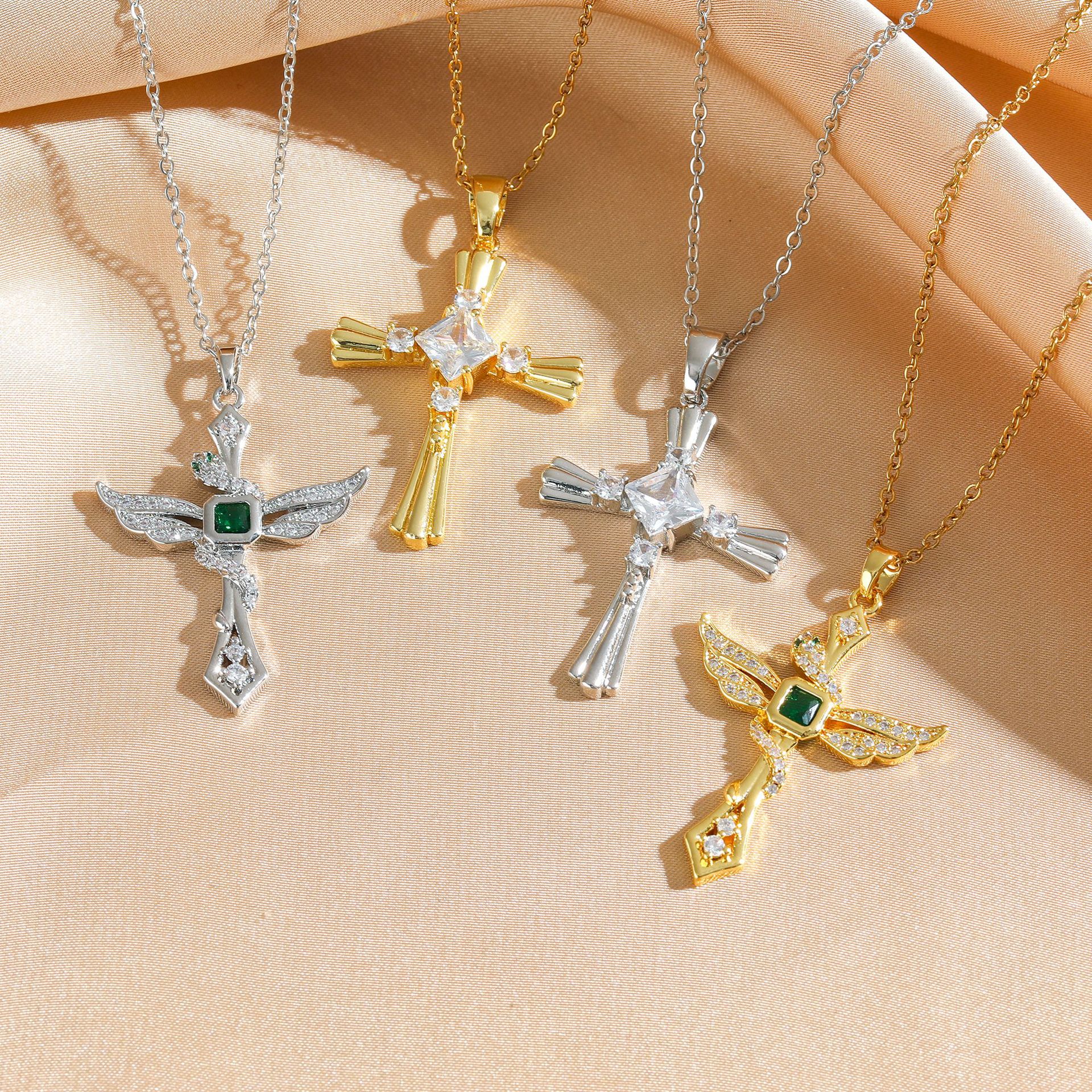 European and American Fashion Snake Wrapped Cross Necklace Women's Jewelry Elegant Niche Design Colorfulful Zircon Trendy Clavicle Chain