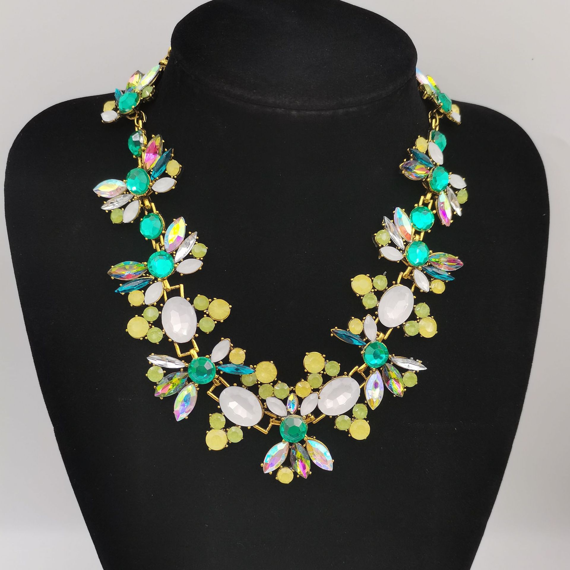 European and American fashion new cross-border retro luxury diamond-embedded colorful flower pendant trendy temperament personalized necklace jewelry