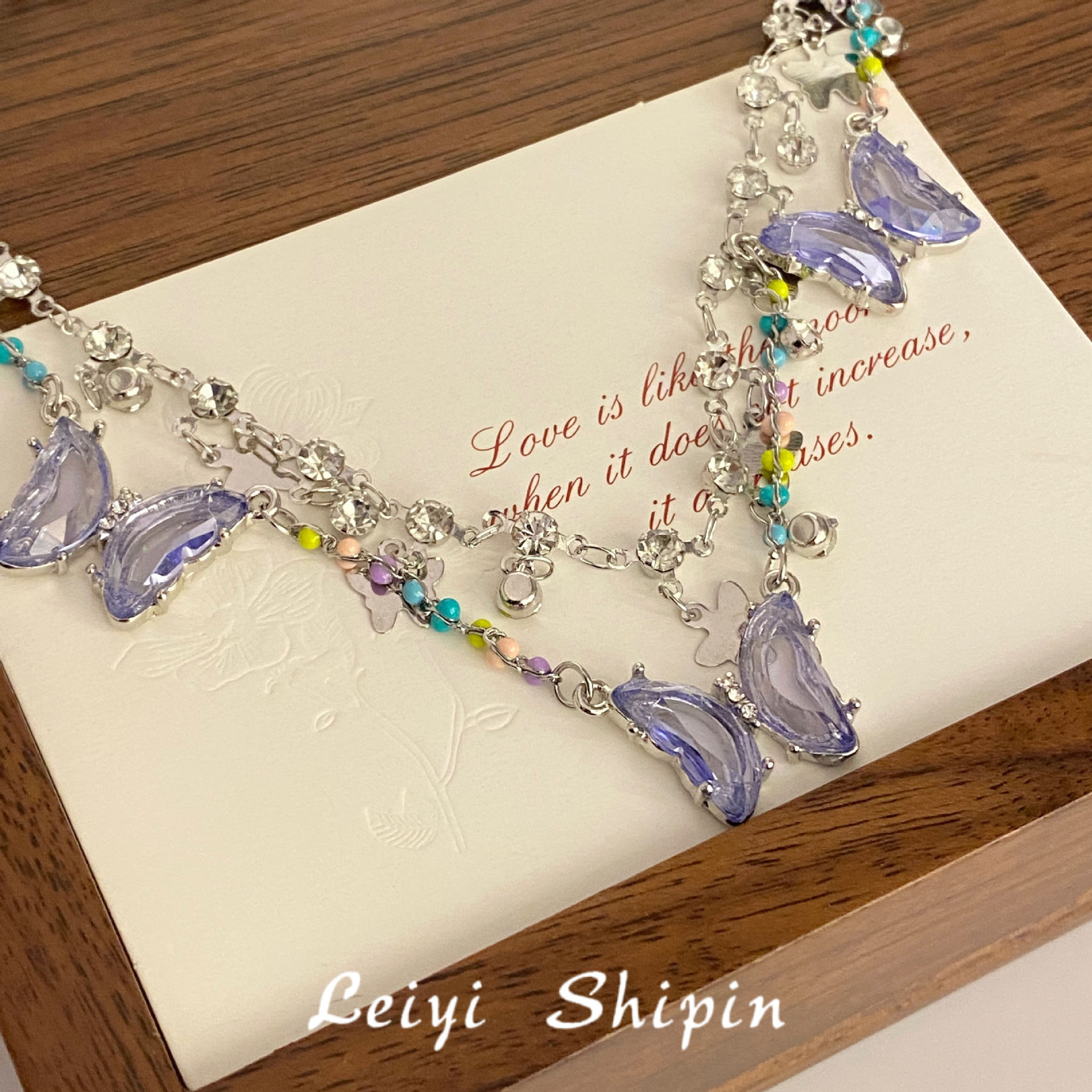 Light Luxury Niche Dopamine Color Gravel Stitching Love Necklace Female Spice Girl Y2K Sweet Cool Style High-grade Clavicle Chain