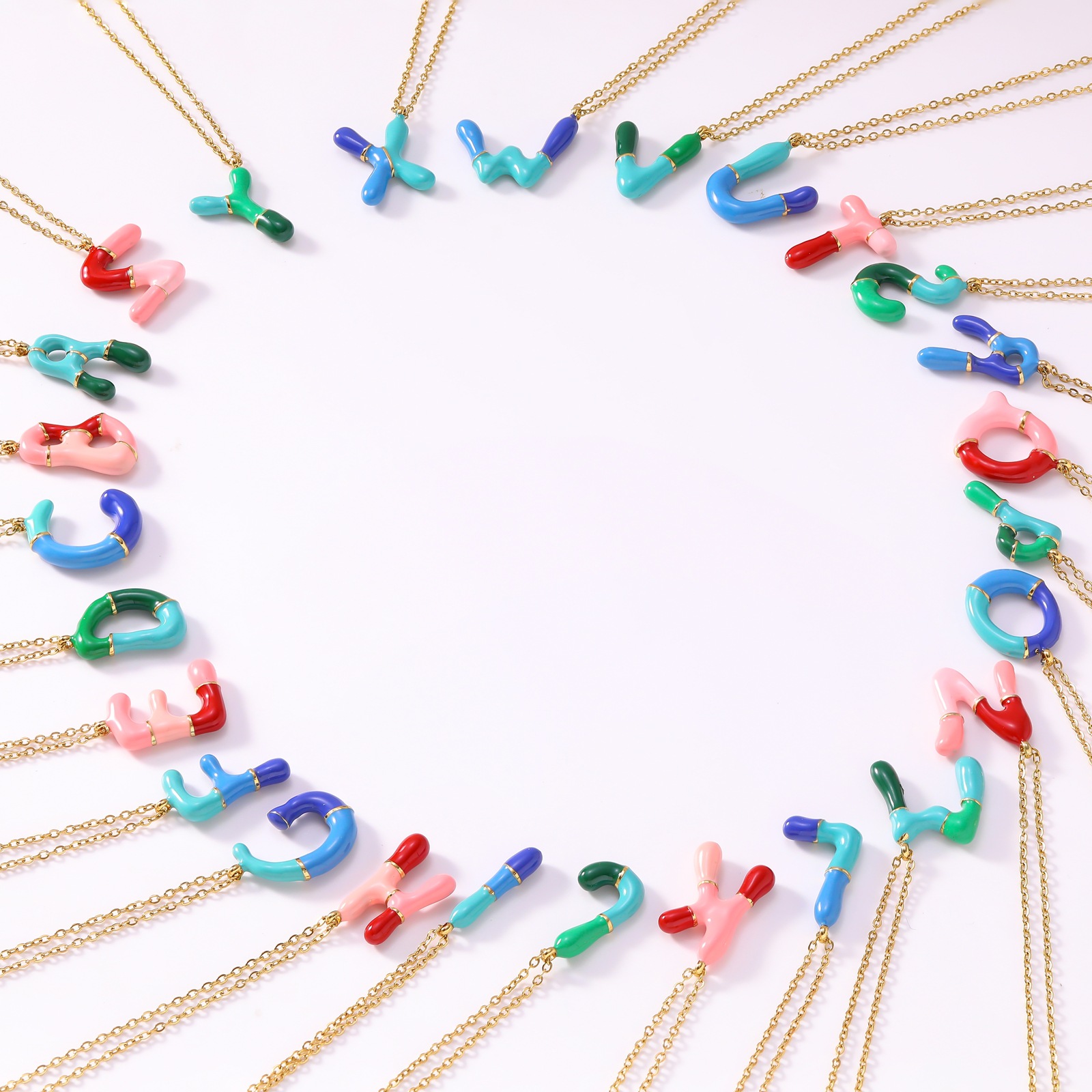 New Hot Selling Colorful Oil Dripping Dopamine Bubble 26 English Letter Necklace Pendant Female DIY Letter Clavicle Chain