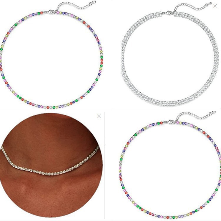 3mm silver bottom glass water with white color mixed color purple green blue diamond claw ladies necklace wholesale