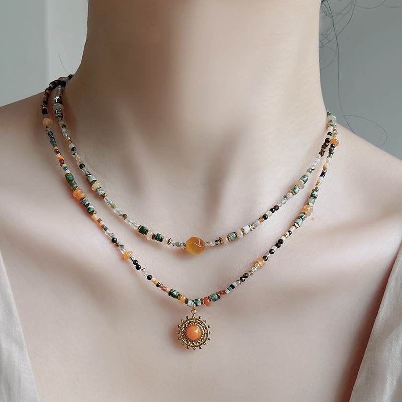 Sunshine in Rizhao ~ Colorful Beaded Sun Pendant Necklace for Women, Light Luxury Niche Style Layered Collarbone Chain