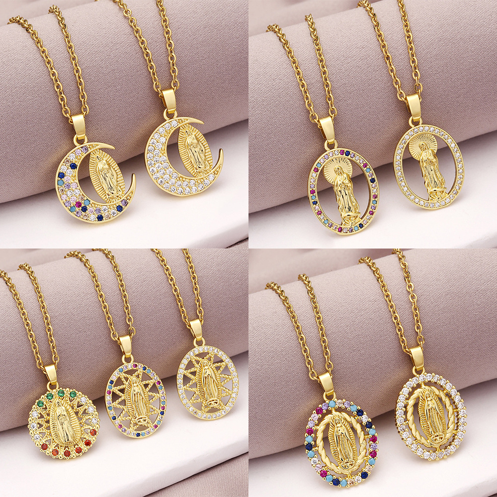 European and American color zircon Virgin Mary pendant necklace women's fashionable elegant all-match trendy jewelry clavicle chain