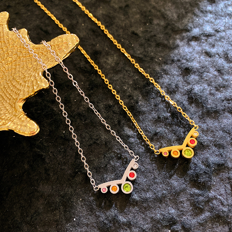 Cross-Border Hot-Selling Colorful Zircon V-Shaped Necklace for Women, Light Luxury Internet Celebrity Style Versatile Stainless Steel Clavicle Chain Fashion