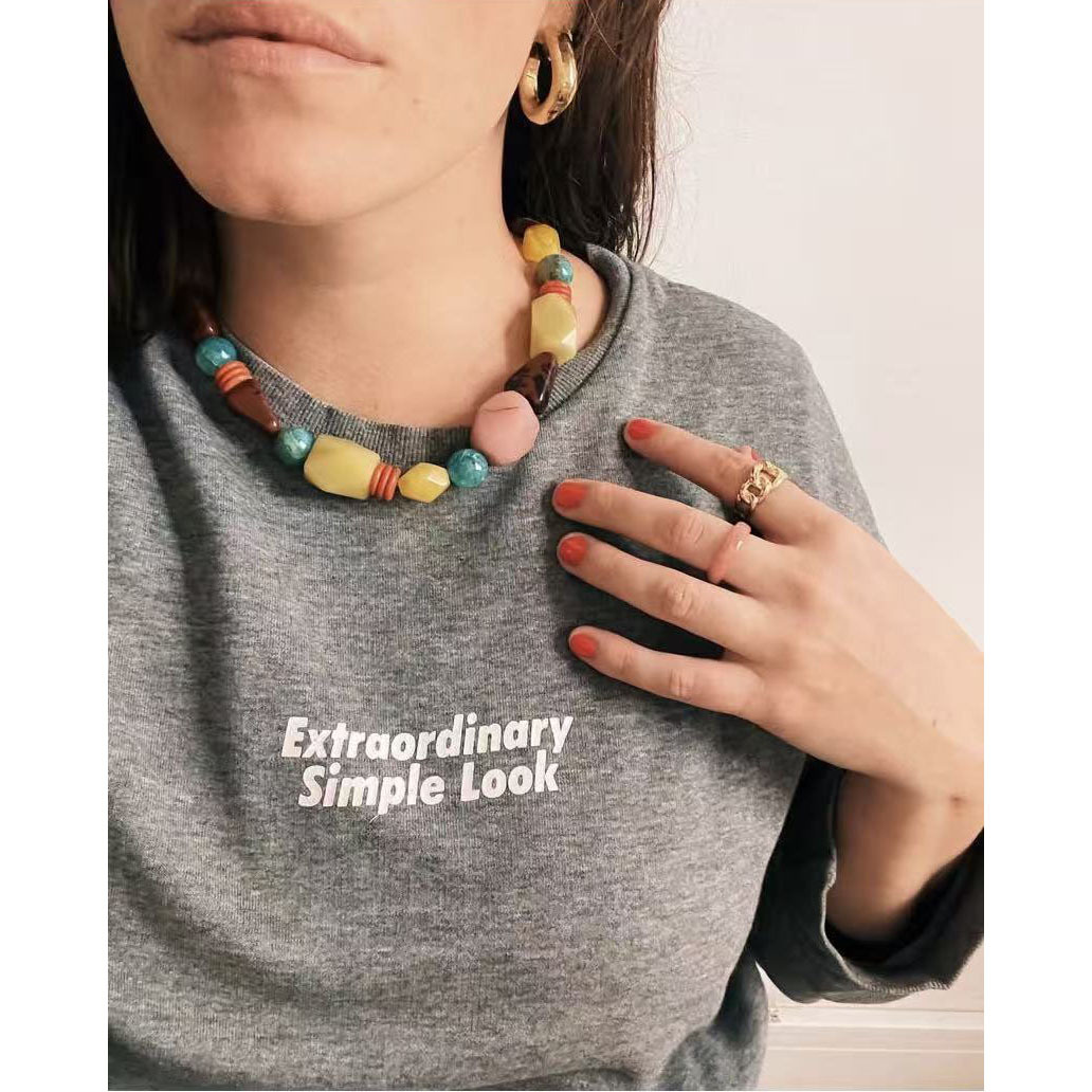 European and American Fashion Ins Style Colorfulful Natural Stone Beaded Necklace for Women Retro Versatile Stylish Niche Clavicle Chain Accessories