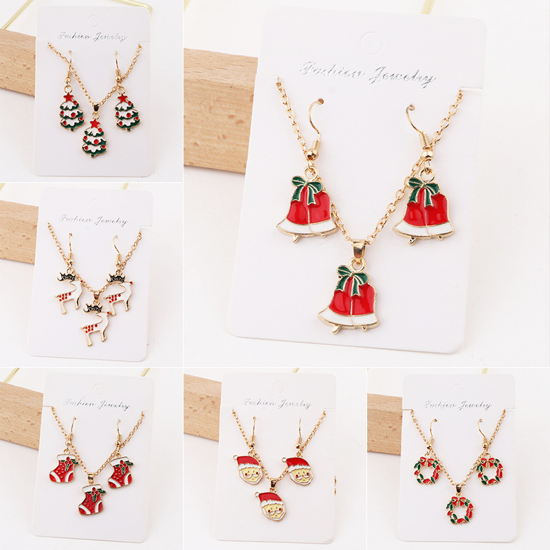 European and American cross-border new Christmas suit necklace earrings snowman colorful bell Christmas jewelry collection