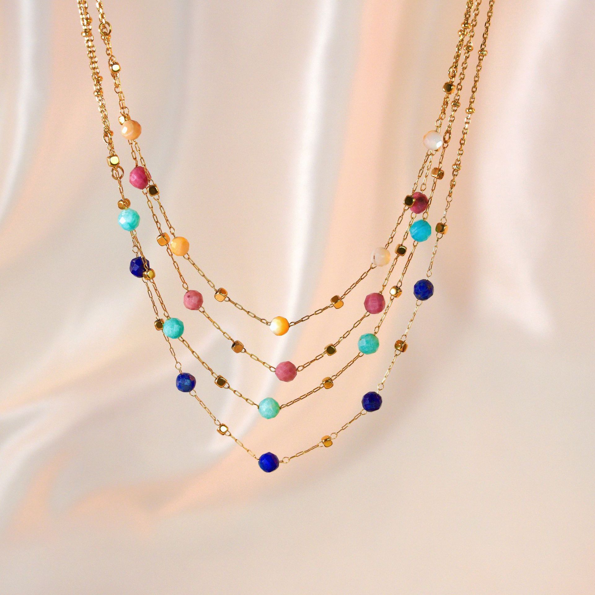 European and American Accessible Luxury Elegant Women's Colorful Faceted Natural Stone Square Bead Stainless Steel Necklace Normcore Niche Necklace