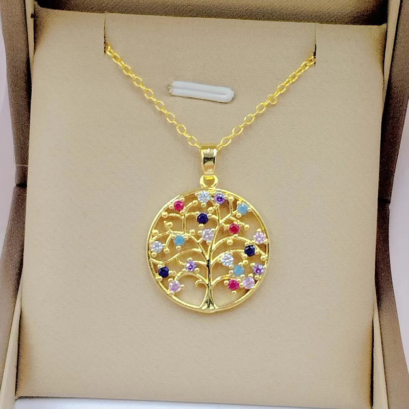 [real Gold Inner Furnace] Electroplated Colored Zircon Life Tree Necklace Fashion Internet Celebrity Clavicle Chain