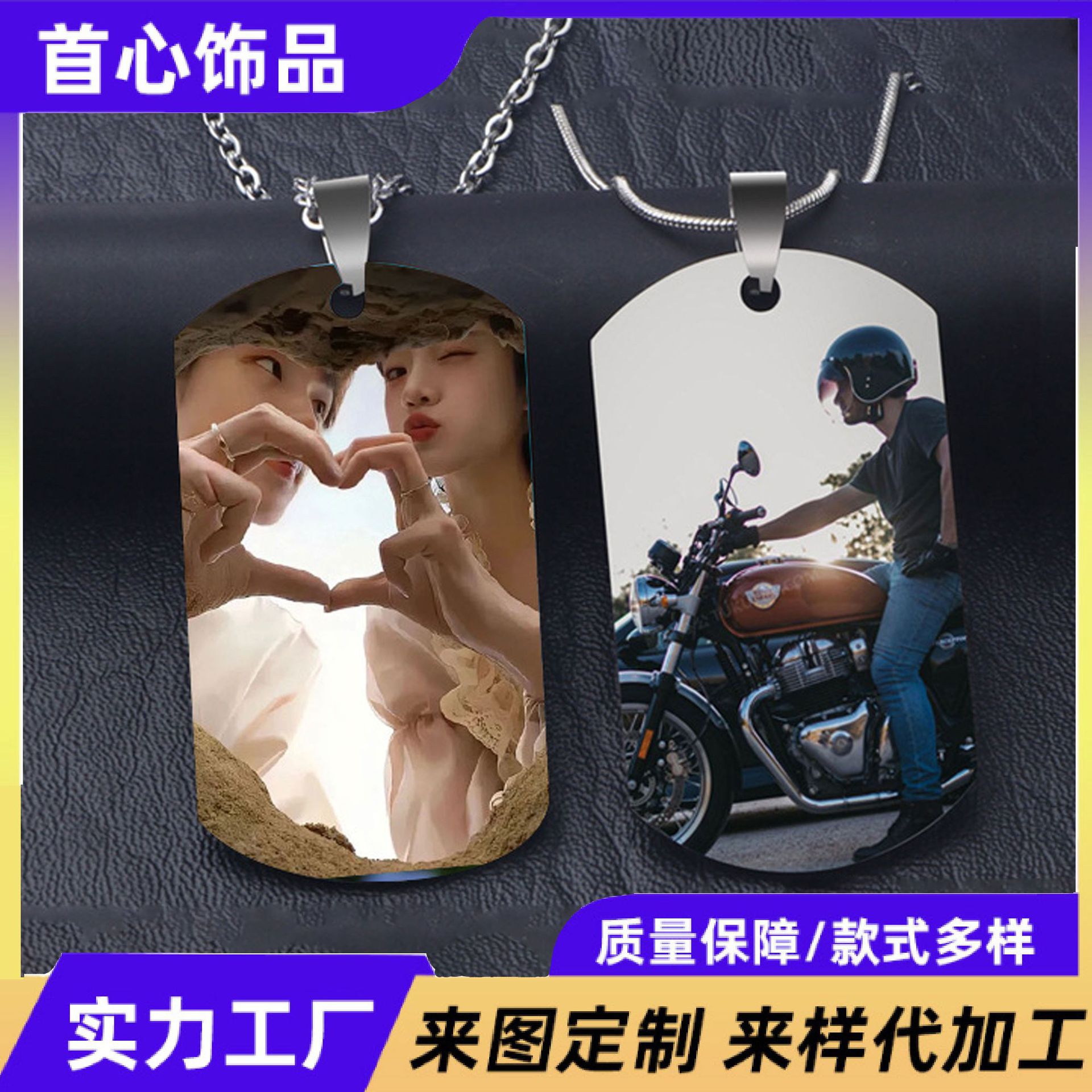 European and American Cross-Border Stainless Steel Military Brand Single and Double-Sided Lettering Colorful Necklace Accessories Metal Jewelry Manufacturer Can Be Customized