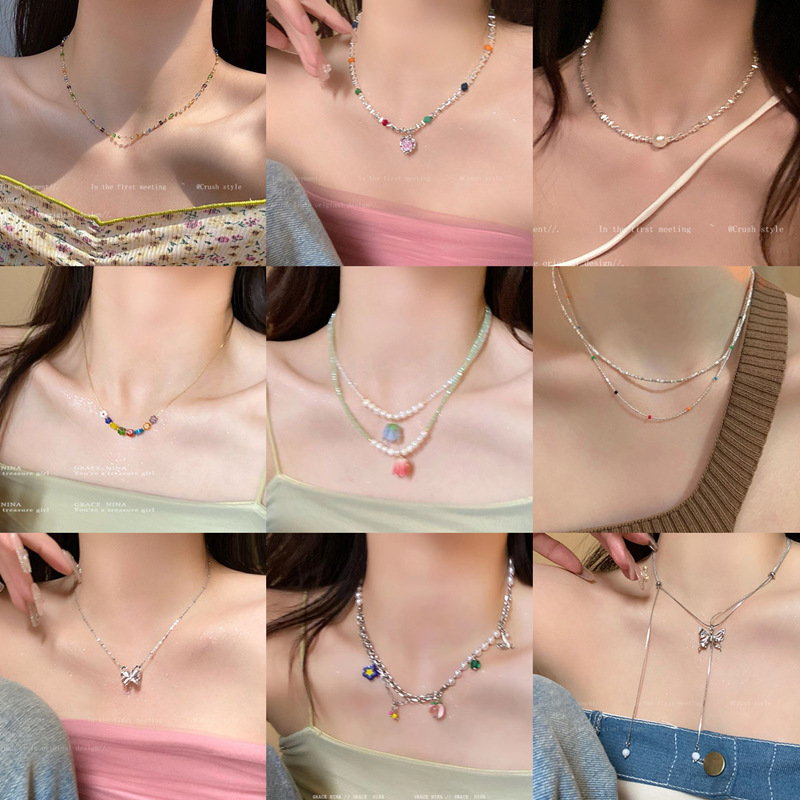 Summer Dopamine Girl Necklace ~ Small Fresh Elegant Niche Colorfulful Beaded Clavicle Chain Personalized Versatile Necklace