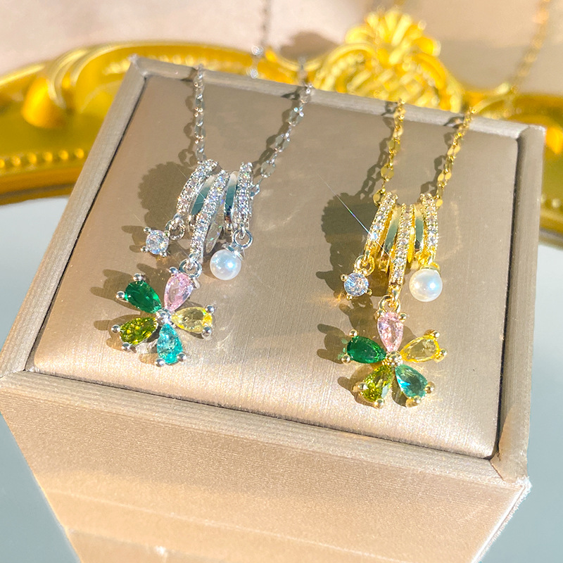 European and American jewelry niche design color zircon butterfly clavicle chain trend Korean version of zircon pendant butterfly necklace women