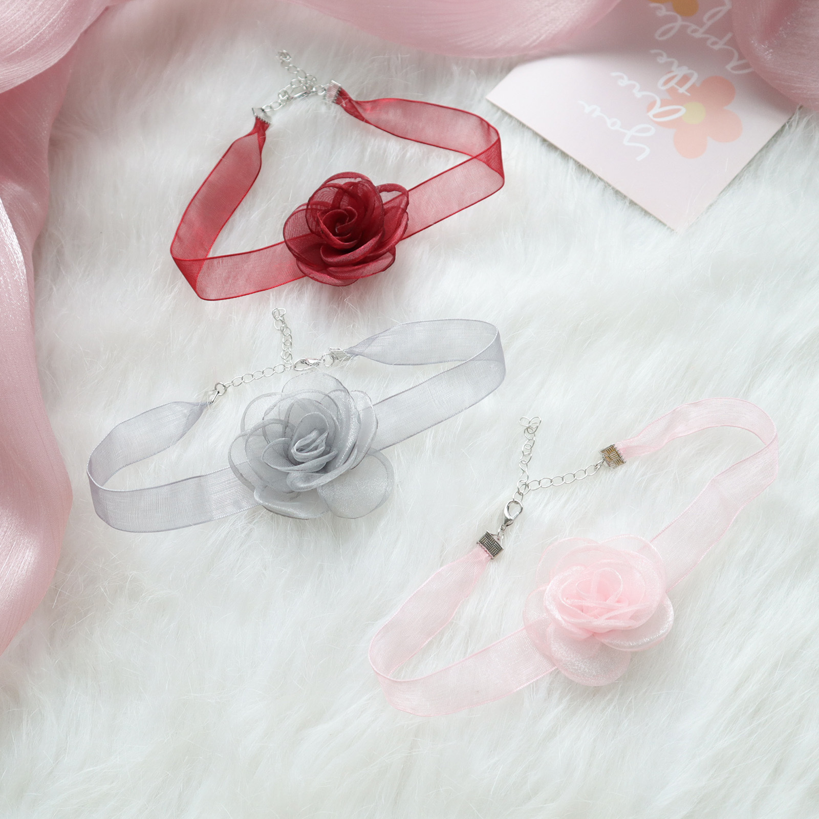 Fairy style jewelry color tulle Camellia necklace short clavicle chain choker flower collar neck chain women