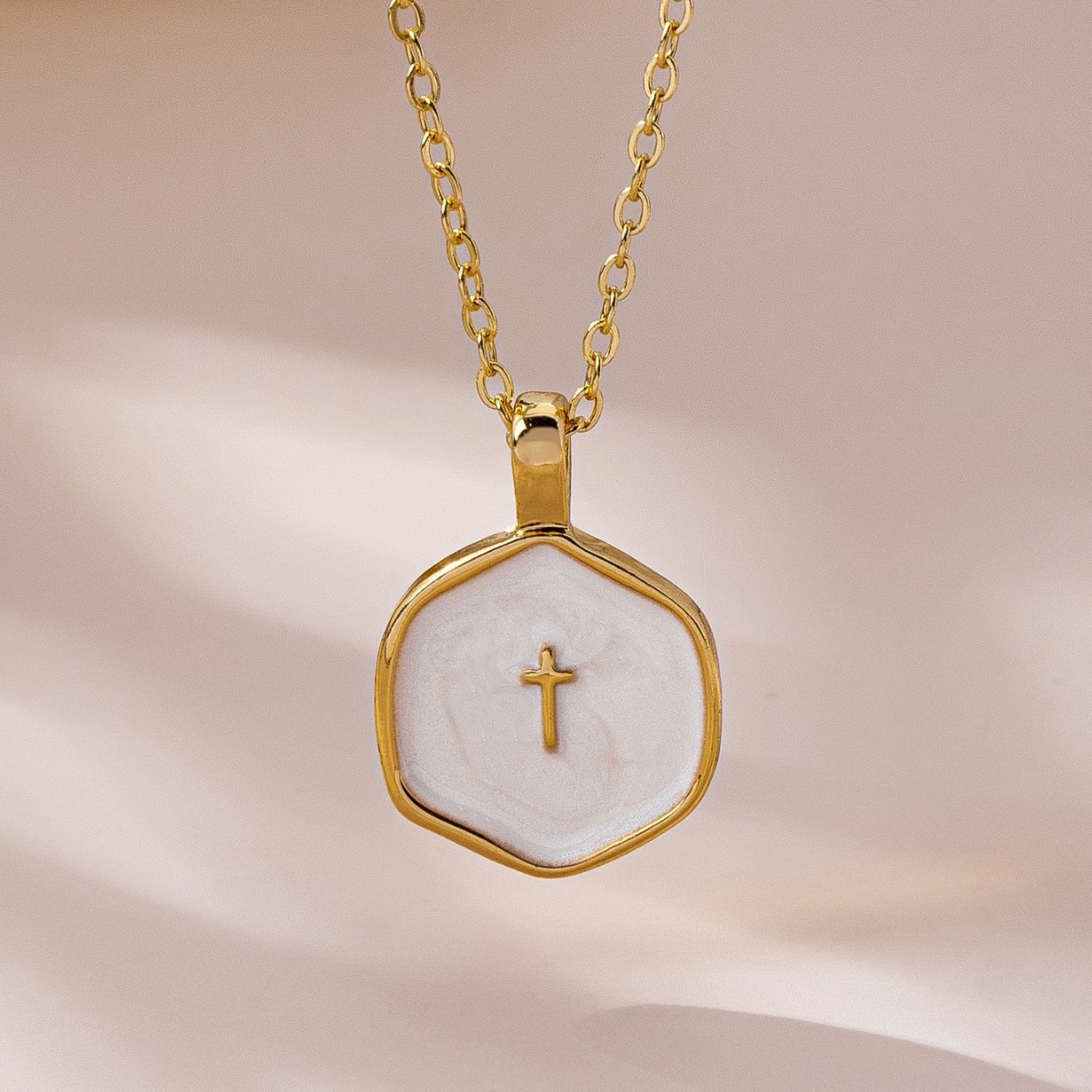 New European and American Cross-Border New Colorful Enamel Oil Drop Cross Necklace for Women Simple Niche Versatile Clavicle Chain
