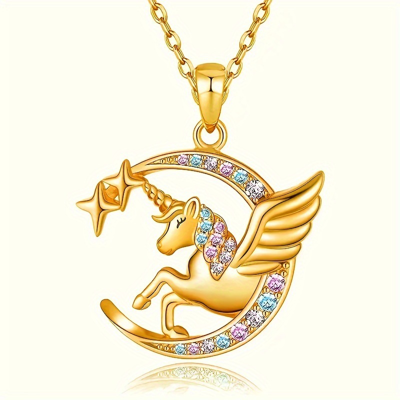 Cross-border New Creative Colorful Unicorn Necklace Clavicle Chain Star Moon Necklace Gap Semi-round Pegasus Children Necklace