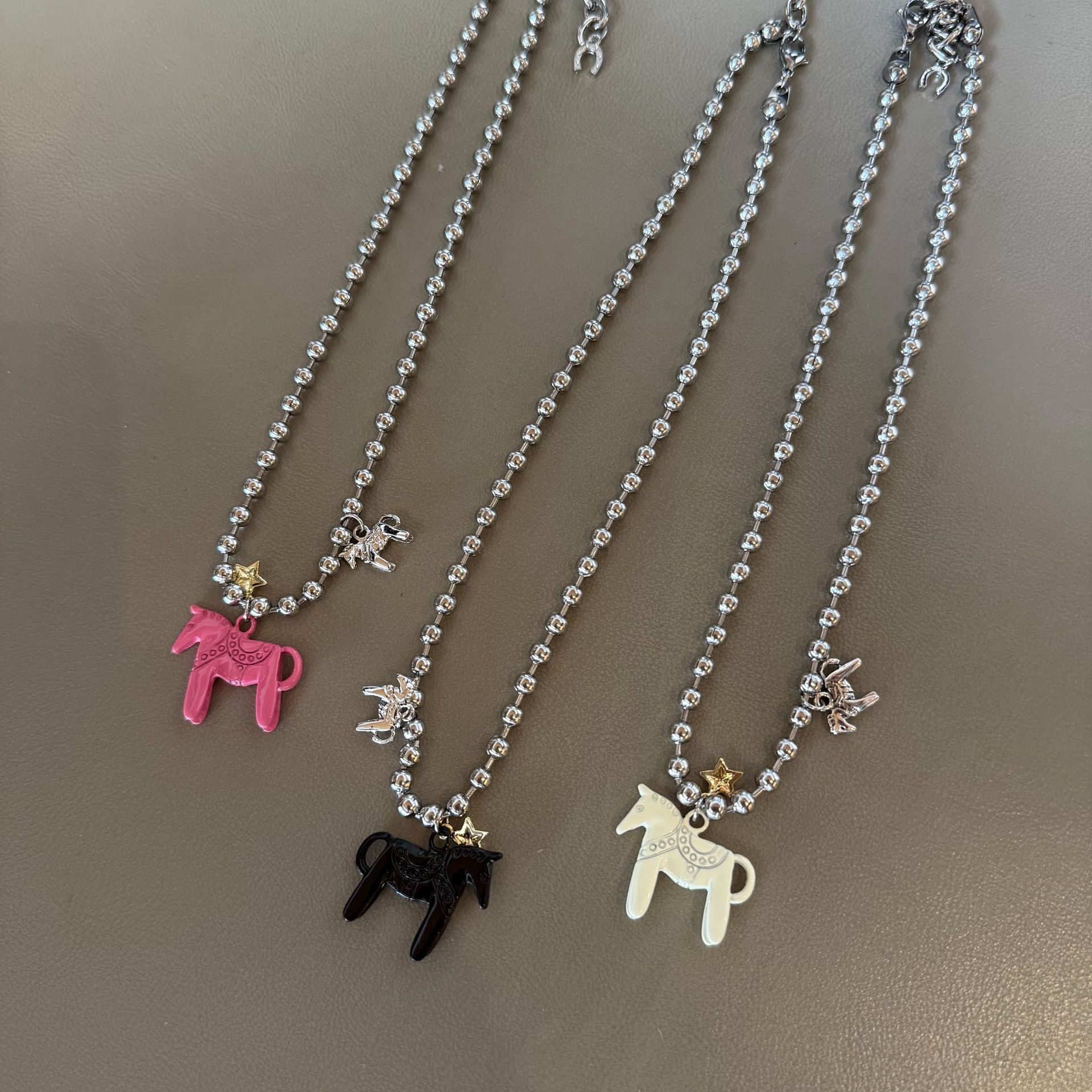 Titanium Steel Necklace South Korea Dongdaemun Same Style Cartoon Color Pony Star Fashion Ball Ins Niche Necklace Women