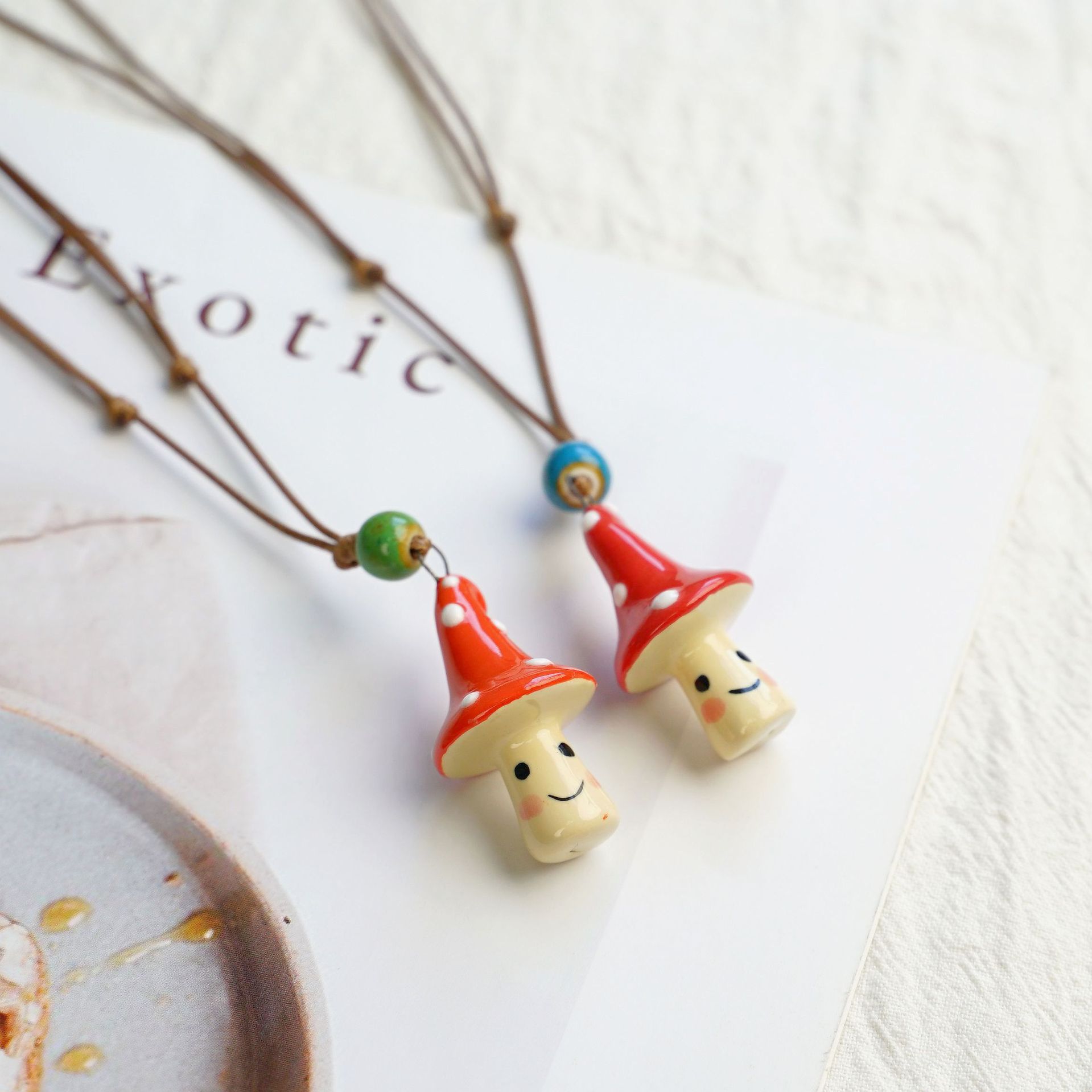 Jingdezhen Dopamine Colorful Autumn and Winter Necklace Accessories Women's Ceramic Mushroom Long Braided Sweater Sweater Chain Cross-Border