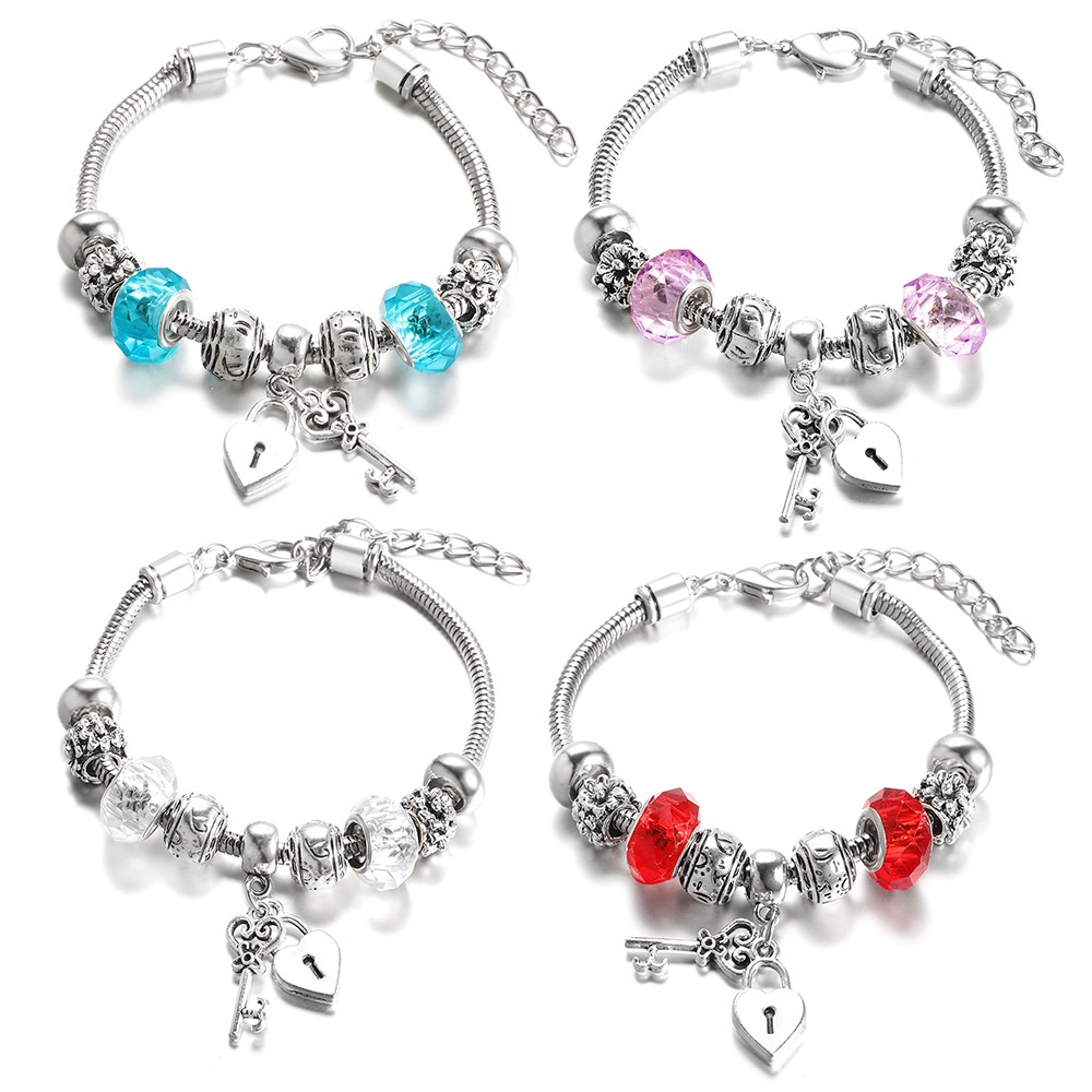 Charm heart key lock 5 colorful beaded bangle lobster clasp adjustable snake chain for women high quality bracelet