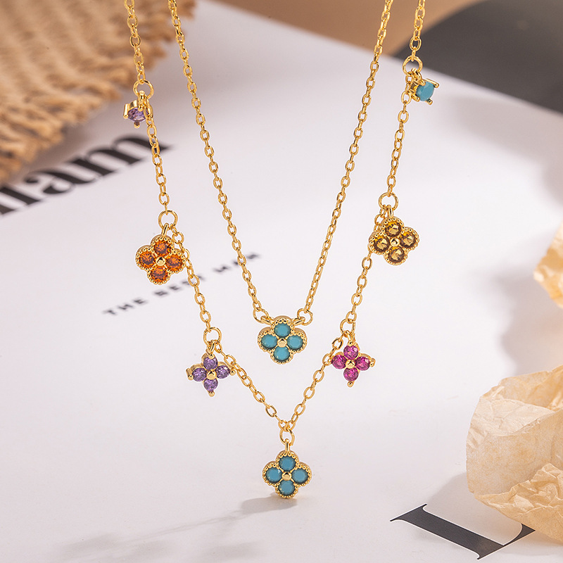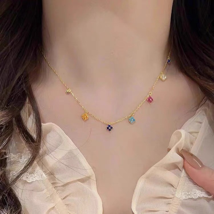 Colorful Dopamine Four-Leaf Clover Zircon Necklace Women's Accessible Luxury Niche High-End Clavicle Chain Exquisite Versatile Accessories