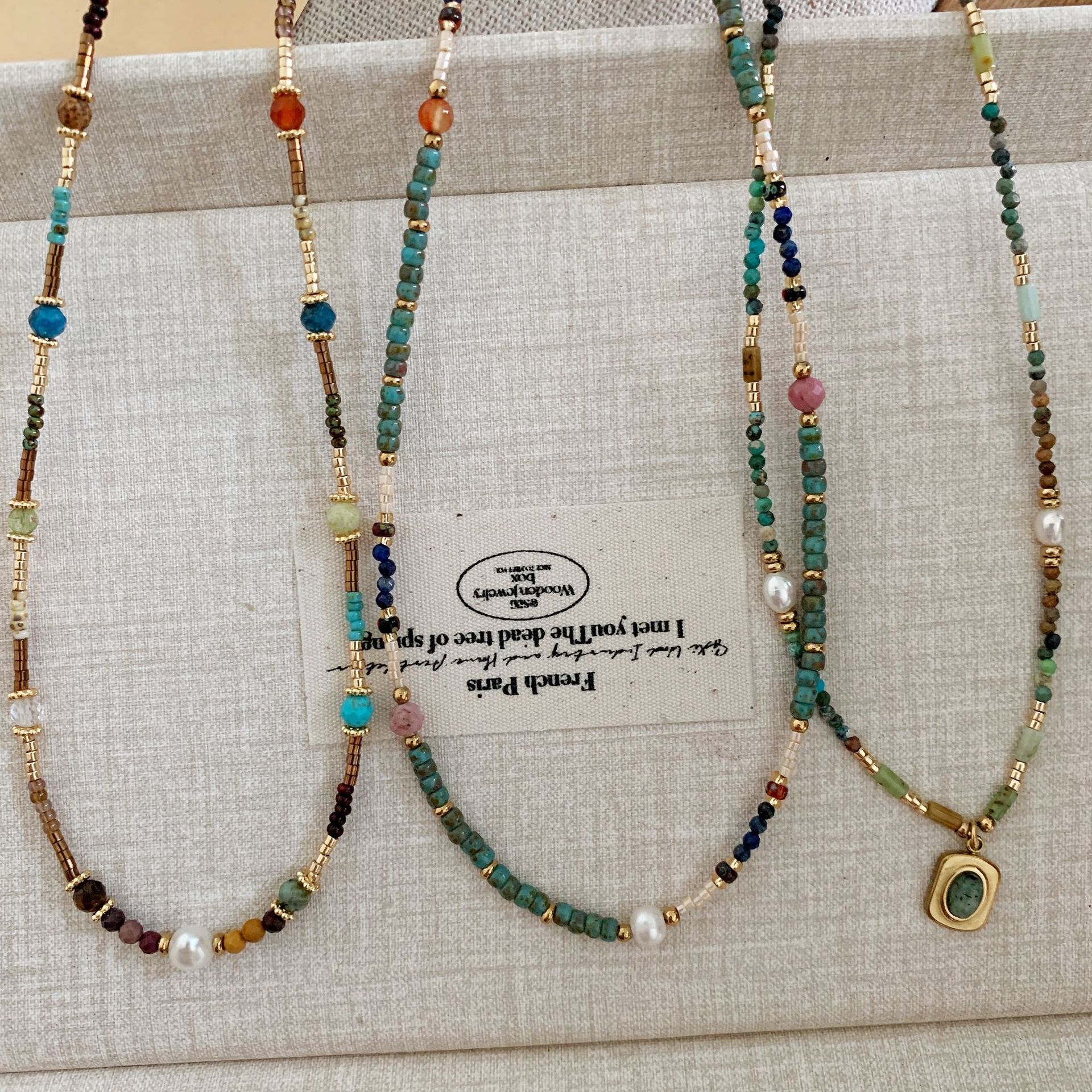 Bohemian color irregular gravel necklace ethnic style niche simple necklace copper plated 18K real gold chain
