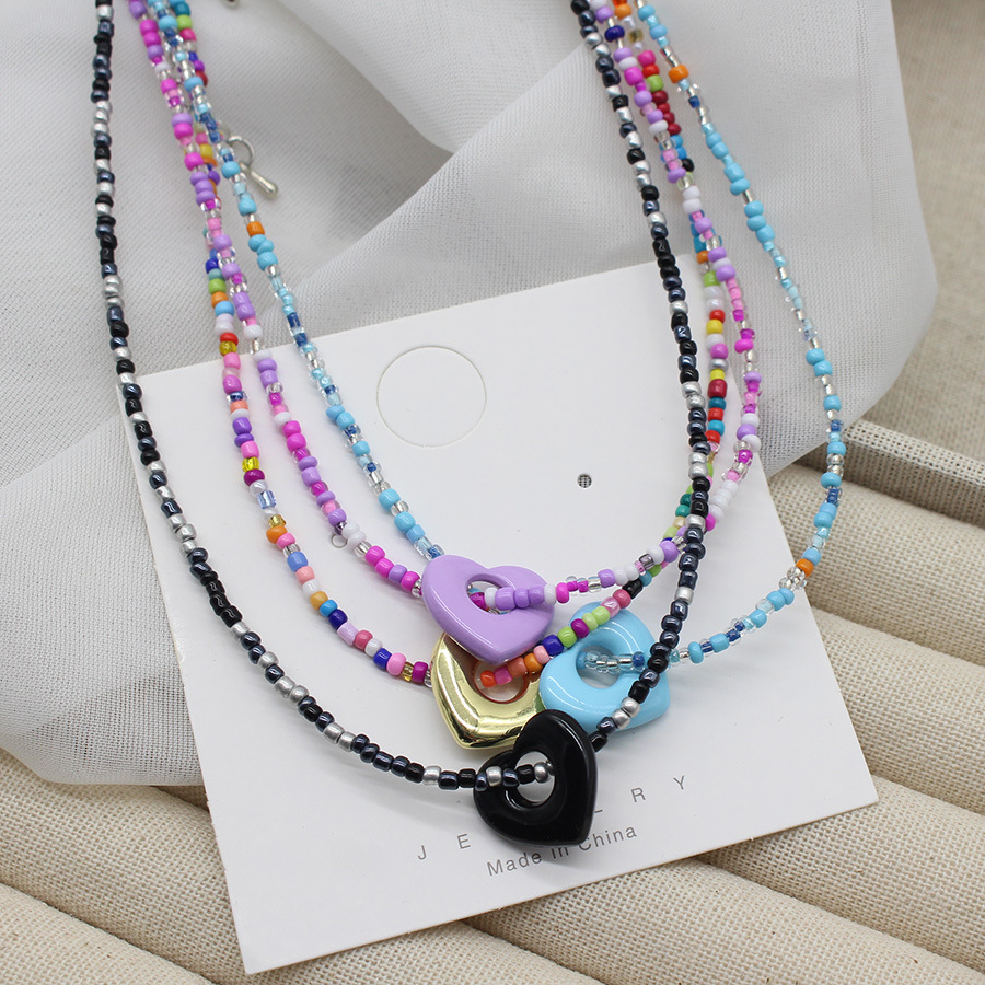 Ethnic Style Colorful Love Beaded Necklace Women's Niche High-End Brown Braided Rope Double-Layer Clavicle Chain