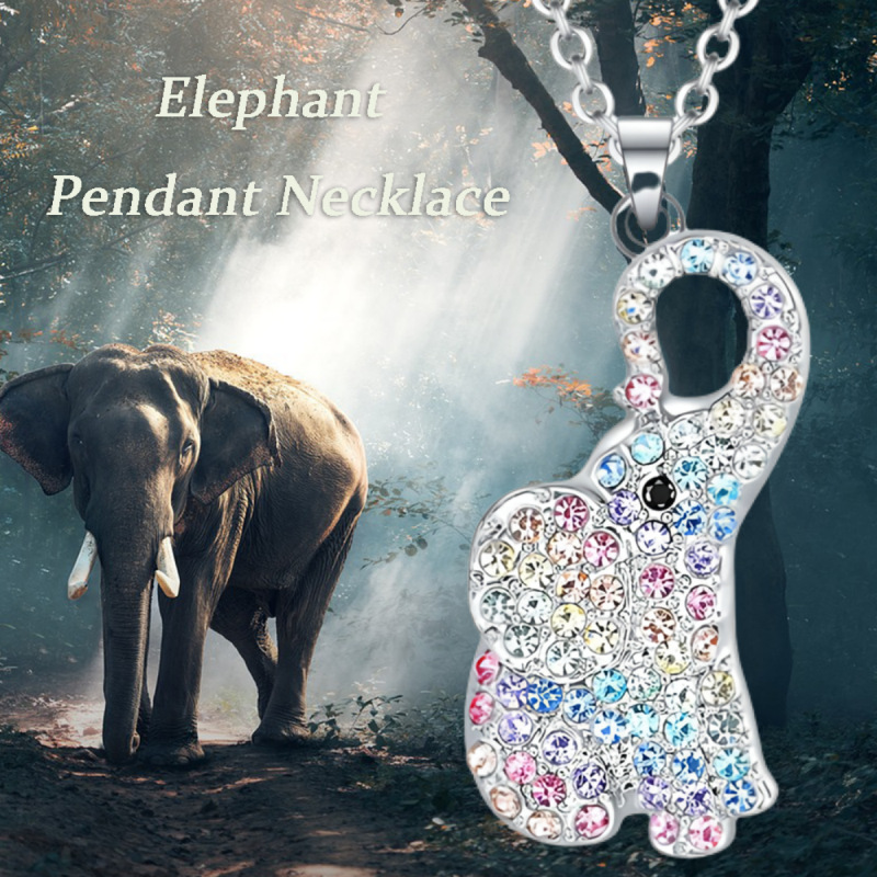 Cross-border hot sale European and American new sweet fresh style inlaid color zircon female elephant pendant necklace factory direct sales