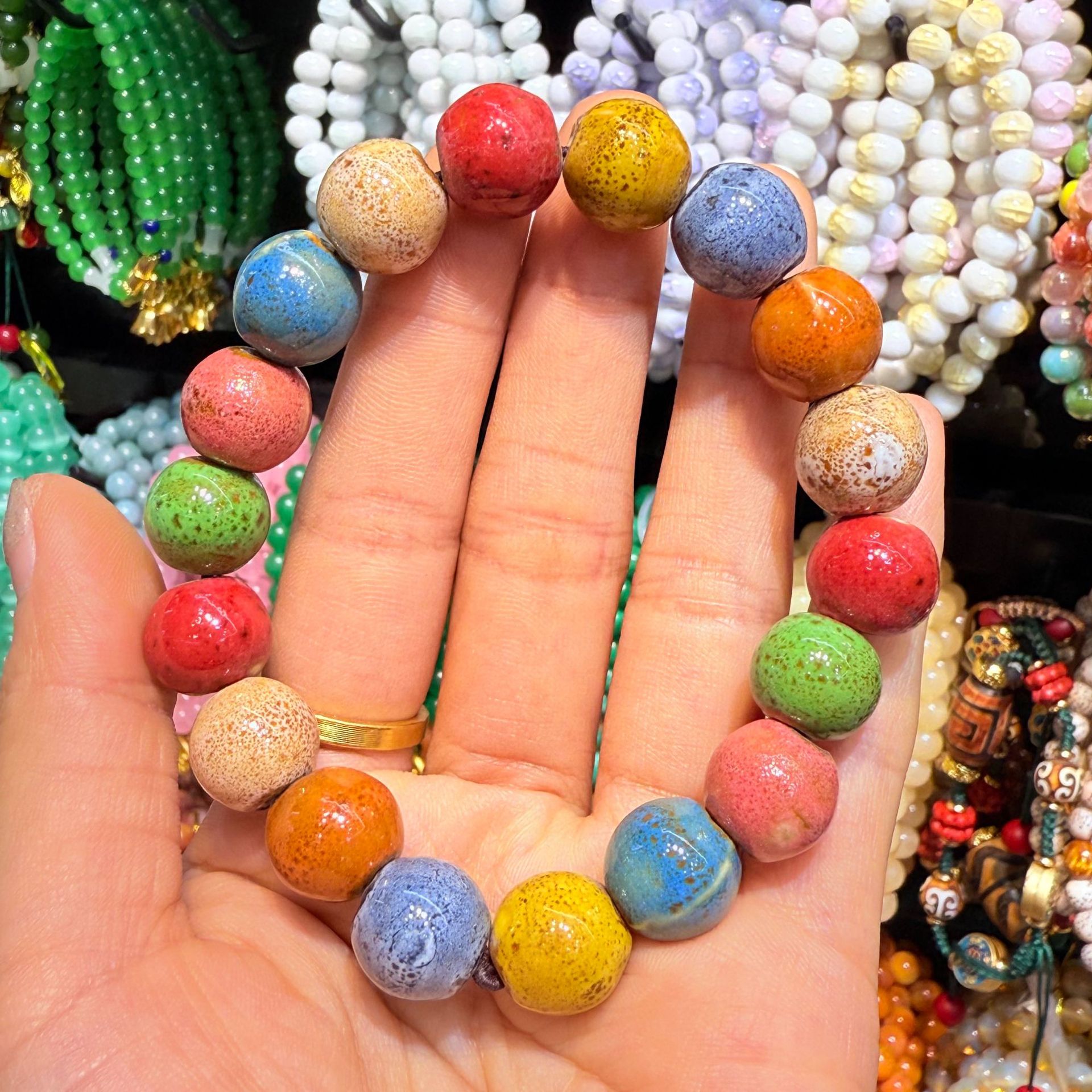 National Tide Style Bracelet Retro Ethnic Style Bracelet Colorful Flower Glaze Ceramic Bracelet Female Jingdezhen Ceramic Bracelet Jewelry