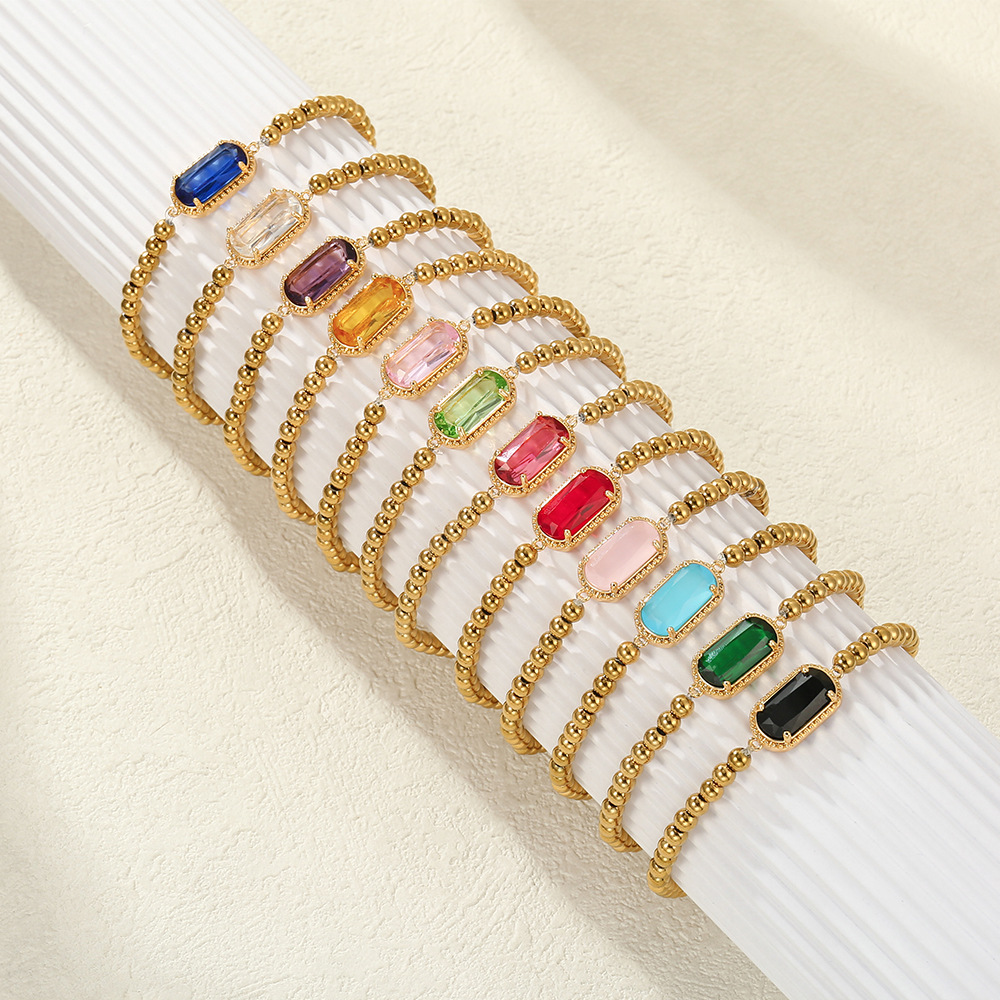 European and American Light Luxury Colorful Zircon Bracelet Women's Square Twelve Birthstone Stainless Steel Beads Bracelet Jewelry Birthday Gift