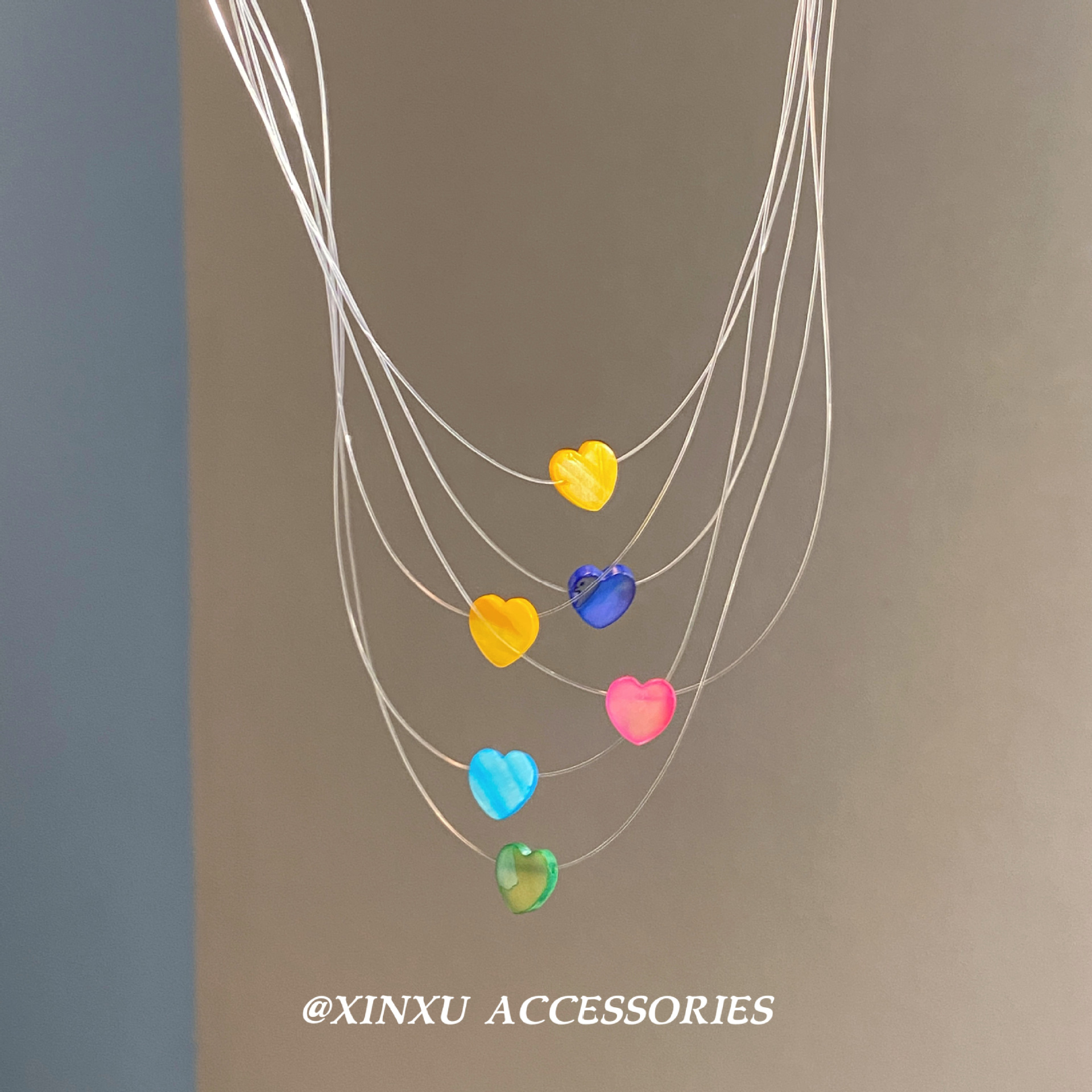 Colorful Stone Love Drop Glaze Necklace Women's ins Trendy 2023 New Niche Sweet Cool Spice Girl Collarbone Chain Trendy Accessories