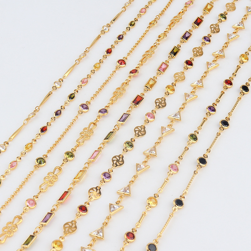 Cross-border AliExpress Style Color Chain Color Zirconium Color Diamond Neck Chain Copper Gold Plated Women's Color Crystal Micro-inlaid Necklace