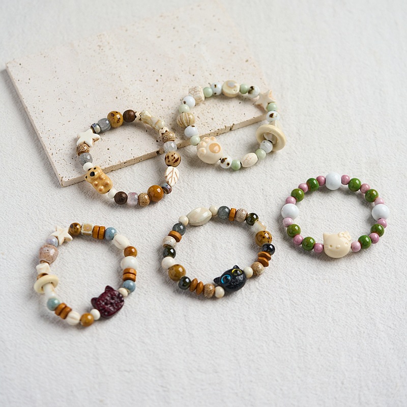New National Tide Duobao Bracelet Men's and Women's Student Jewelry Cat Bracelet Jingdezhen Ceramic Jewelry Wholesale