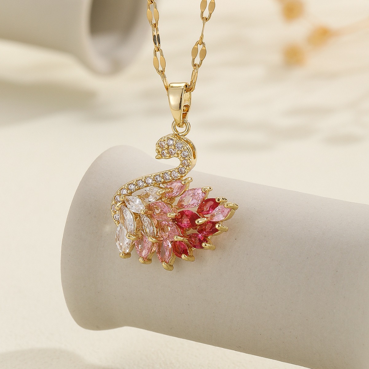 Cross-Border Pendant Crystal Specifically Designed for Colorful Gradient Necklaces, Non-Fading Chain, All-Season Forest Style Clavicle Chain, Swan