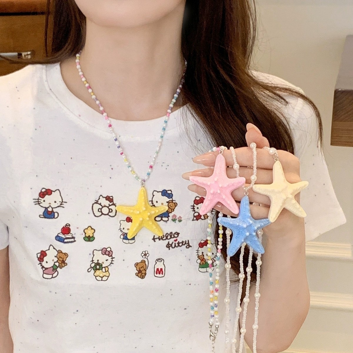 See at the Seaside ~ Star Beaded Starfish Necklace Stacked Summer Seaside Fresh Dopamine Colorful Y2K Clavicle Chain