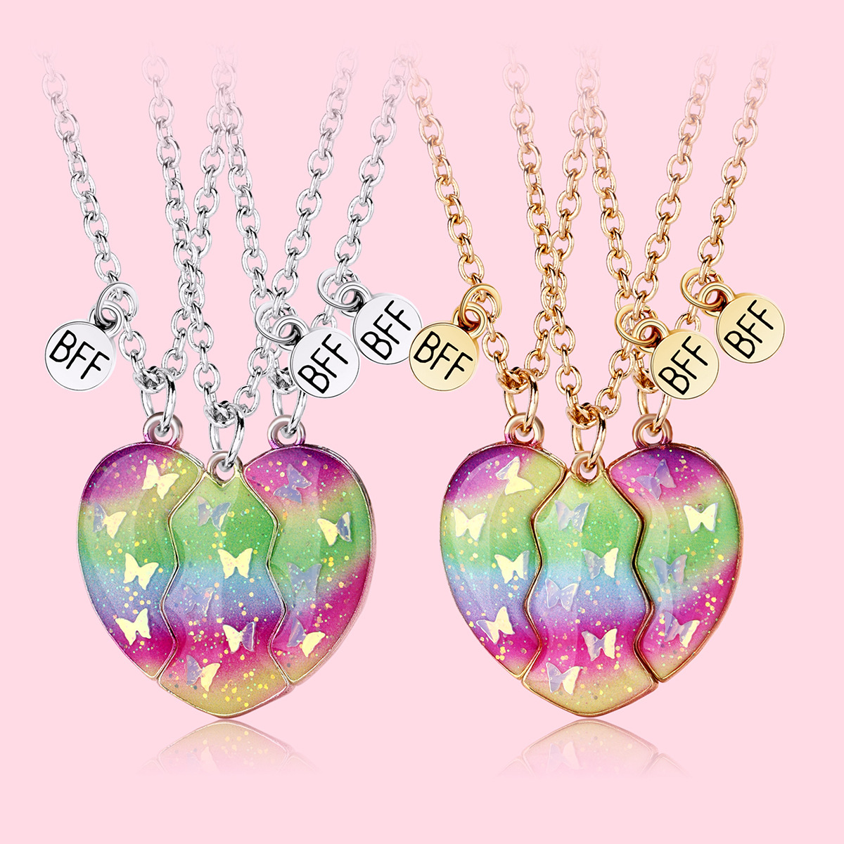 Cross-Border Hot Selling New Necklace Butterfly Love Sequin Colorful Oil Dripping Magnet Photo Bright Best Friend Bestie Necklace Batch