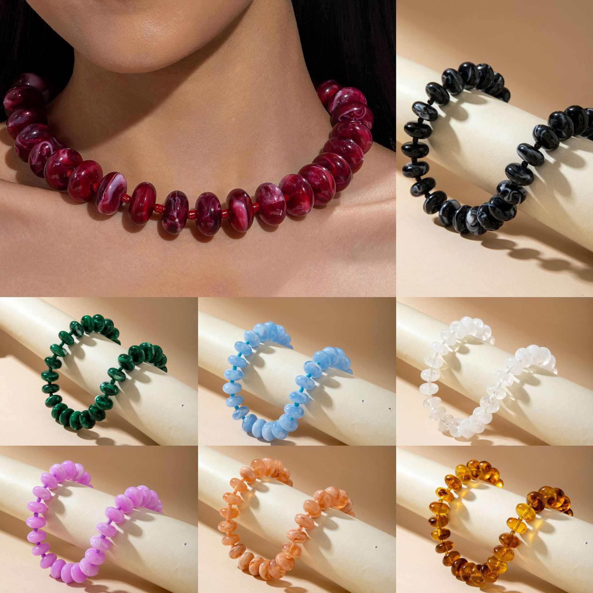 European and American Jewelry Colorful Acrylic Flat Round Bead Necklace Dopamine Candy Color Exaggerated Necklace Necklace