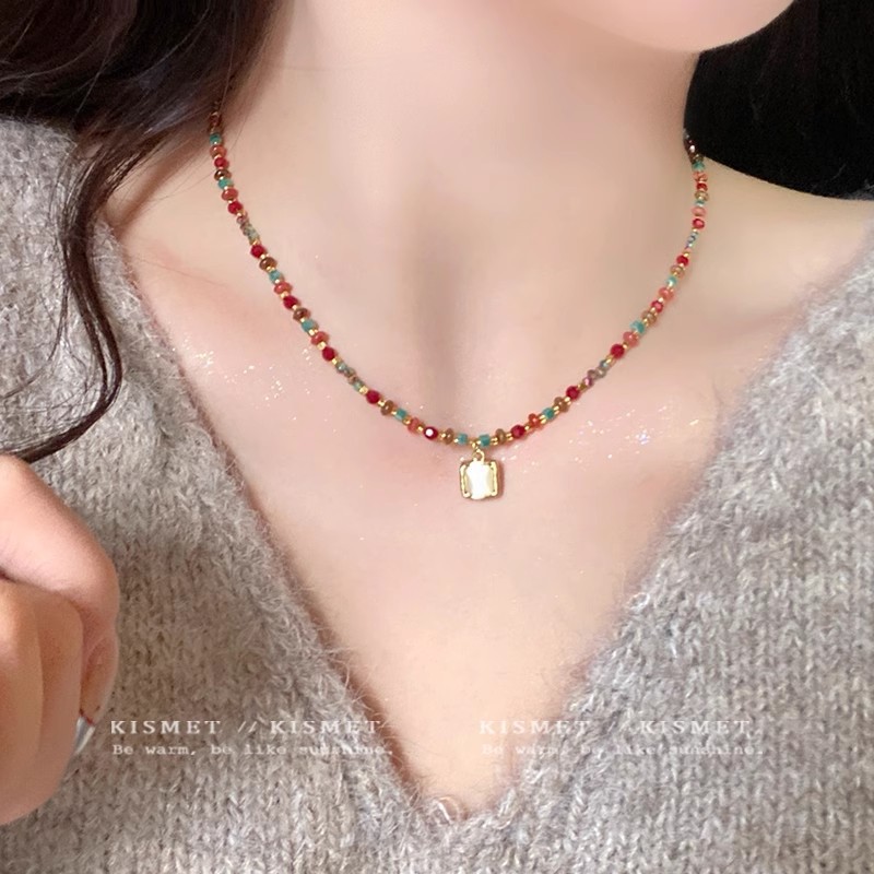 Sweet and Cool Girl ~ Colorful Beaded Love Necklace Women's ins Trendy Niche Design Light Luxury High-end All-match Clavicle Chain